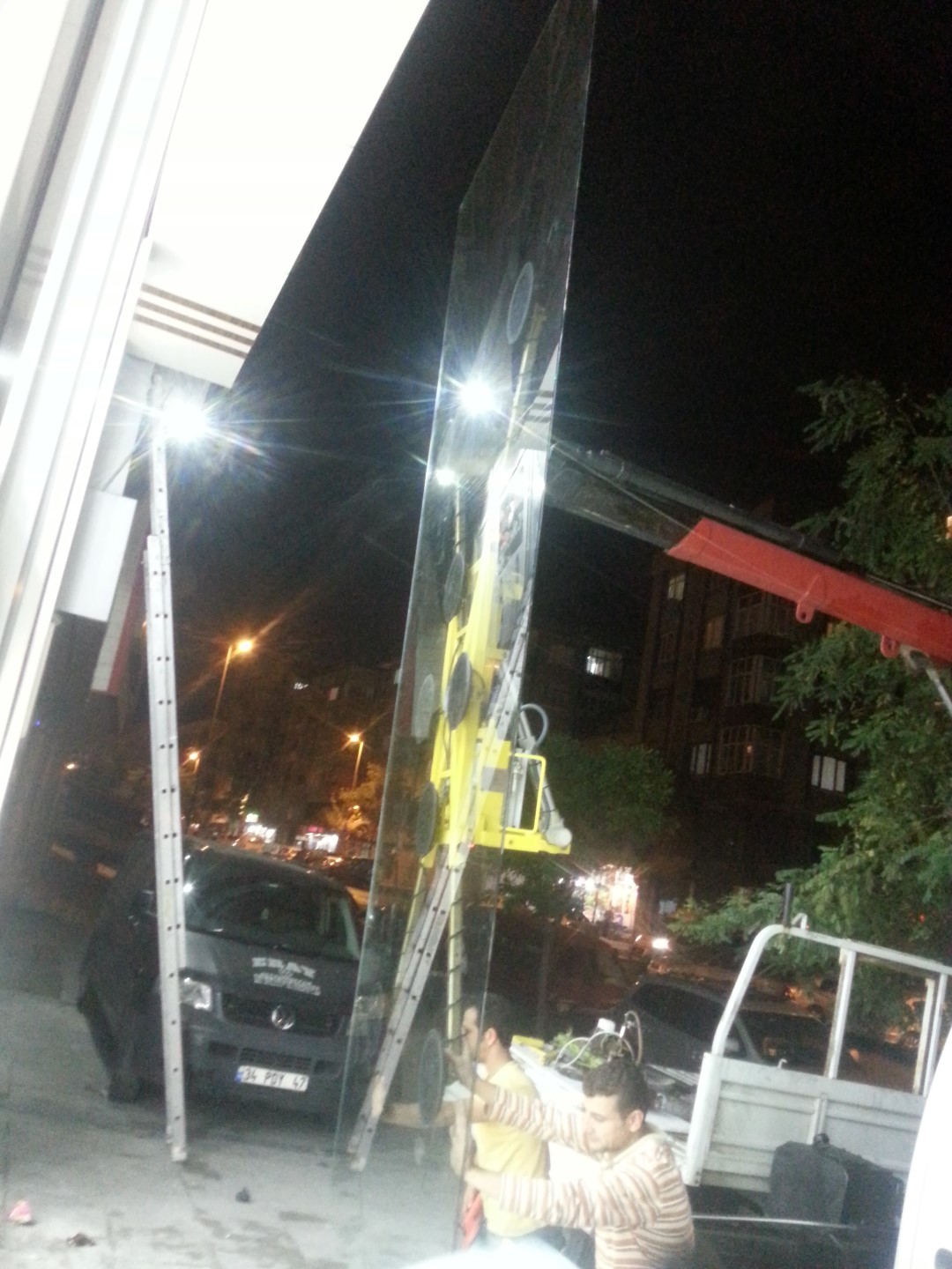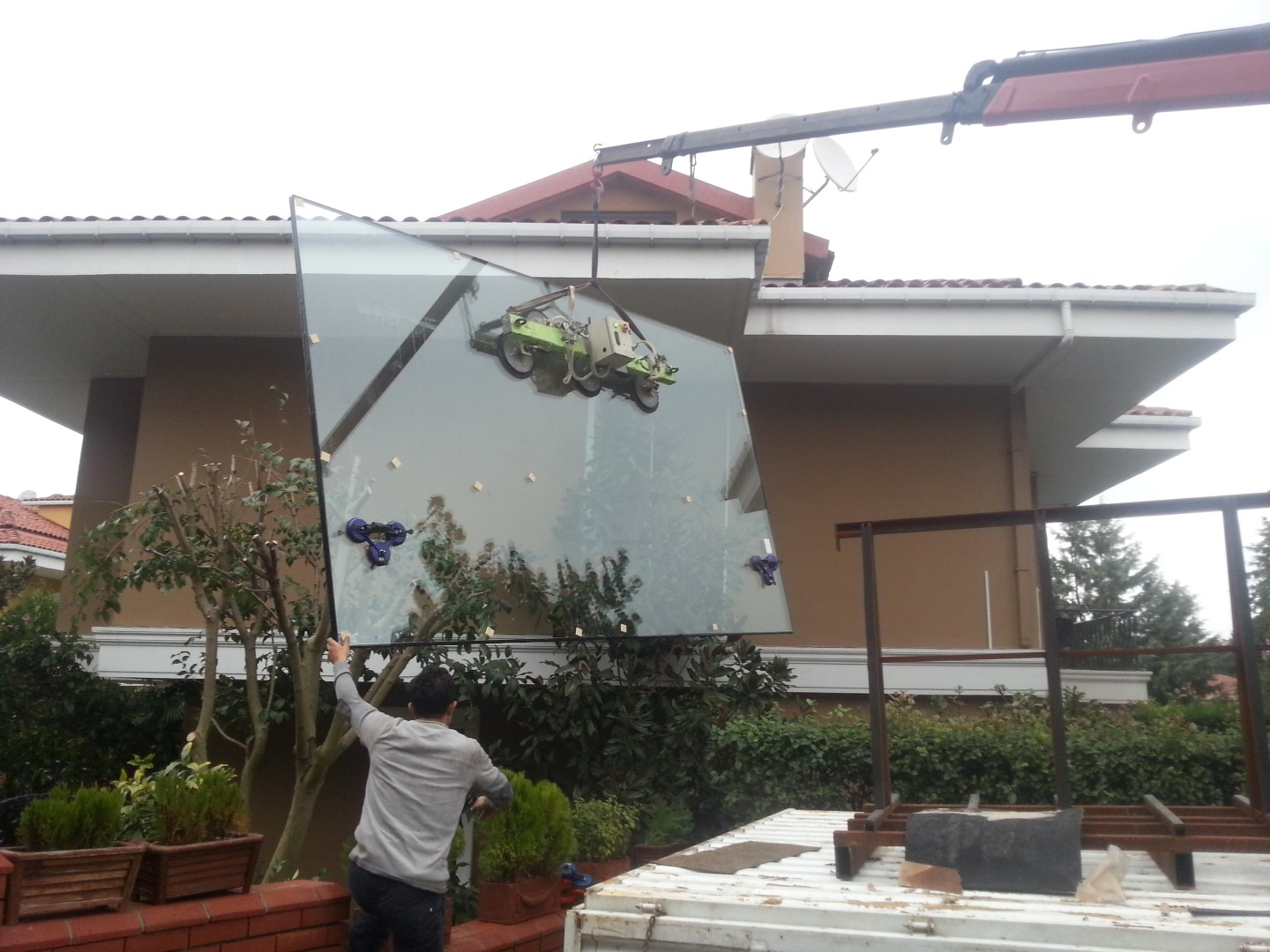 Vinçli Cam Montajı ESTETİK CAM olarak kendi bunyemizde bulunan makina , arac ve ekipmanlarimizla .Profesyonel ekibimizle istenilen ebatta ozellikte camlari istenilen kat ve yere takabiliyoruz .